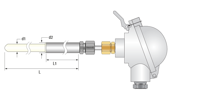 AMS2750 Gecertificeerde Thermokoppel voor gebruik in Vacuum Toepassingen met DIN Vorm 'A' gegoten kop met Flip Top deksel