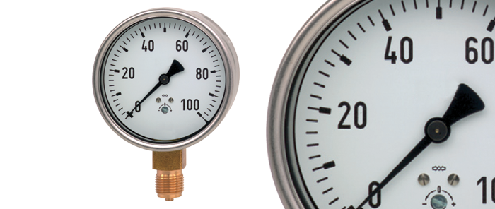Deze met drukveer uitgevoerde drukmeters zijn ideaal voor metingen van lage drukken in gasvormige, droge agressieve omstandigheden geschikt. De drukmeters zijn met onder- of achteraansluiting leverbaar. Deze drukmeters worden veel toegepast in chemische processen, petrochemie, farmaceutische industrie, biotechnologie, machinebouw en energie industrie. Door het in de RVS behuizing geplaatste acrylglas bestand tot IP65.