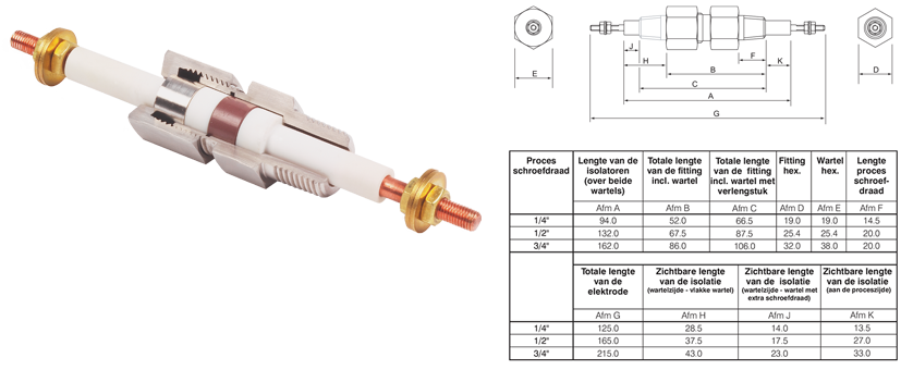 Verzegelde elektrodes van de serie EF worden compleet gemonteerd geleverd voor een directe installatie. De integrale isolatie is van Alumina.