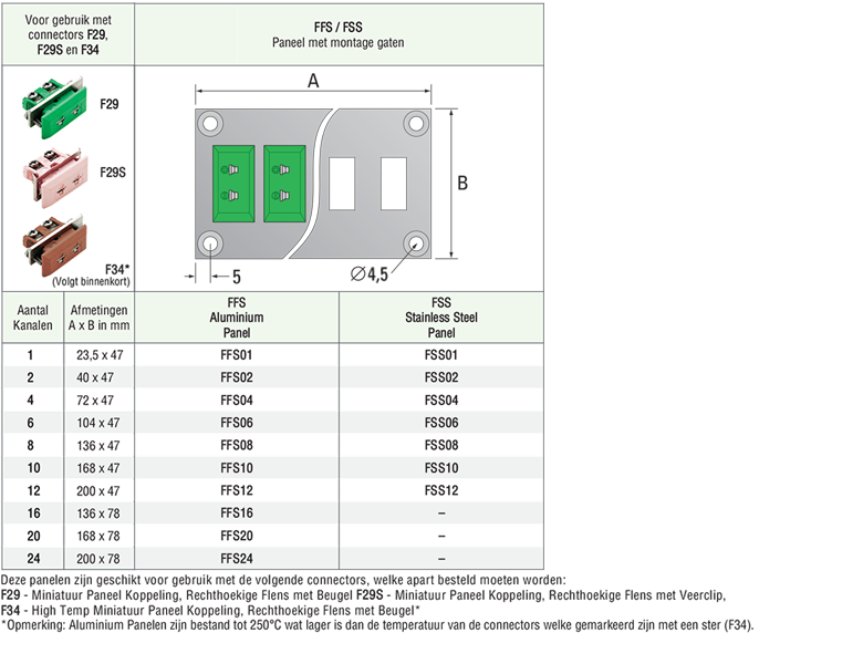 Geanodiseerde Aluminium en RVS Panelen - Voor gebruik met 2 Pin Mini Connectors met Flens
