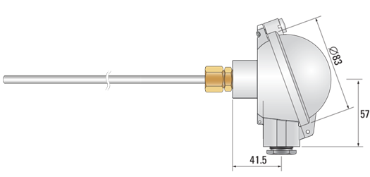 Metalen Thermokoppel voor hoge temperaturen (Type 27) met DIN Vorm 'A' gegoten kop met Flip Top deksel